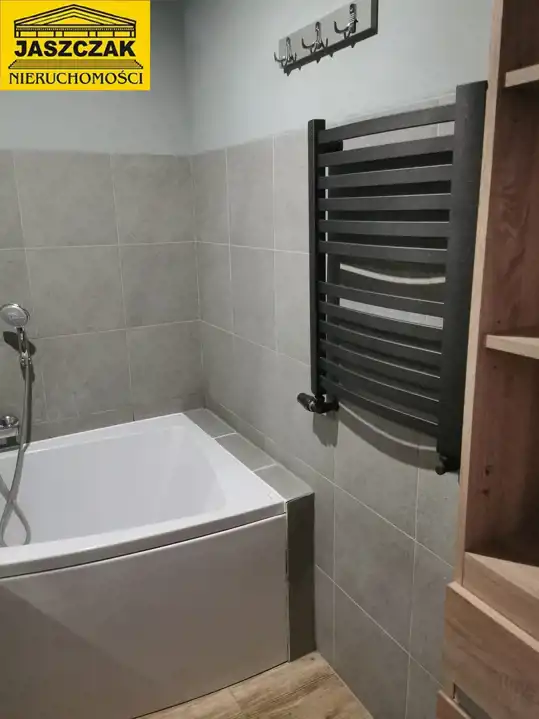 - łazienka (3,5) m2 z dużą wanną, pralką Samsung, nowym grzejnikiem oraz szafką pionową wiszącą,