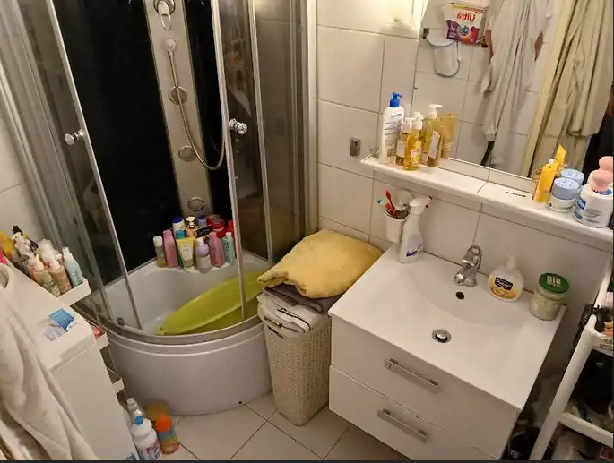 w łazience i wc na podłodze i ścianach kafle nowego typu (wymienione ok. 10 lat temu).