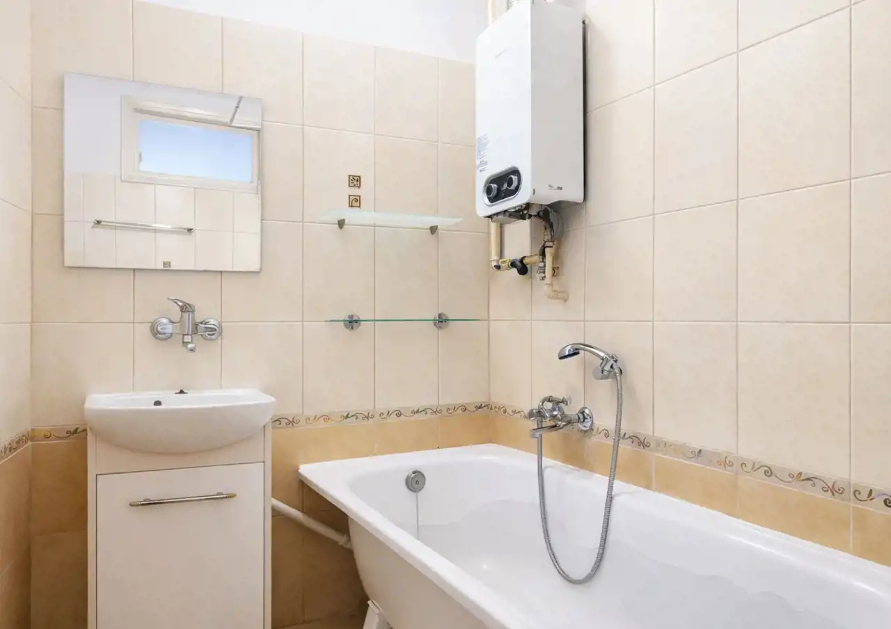 - Media Ogrzewanie: C.O. miejskie; Woda: ciepła - piecyk
