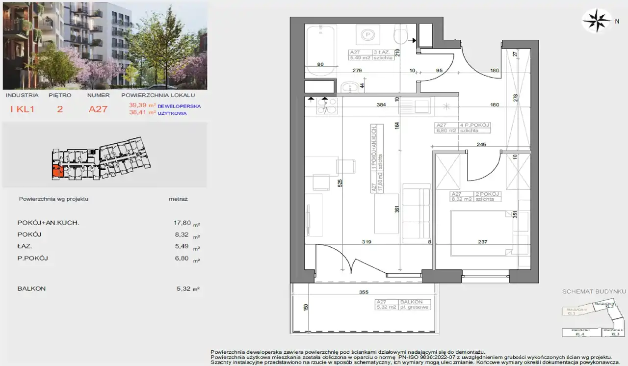 - Charakterystyka mieszkania 38.41 m2, 2 pokoje