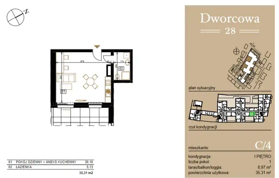 - Charakterystyka mieszkania 35.31 m2, 1 pokój