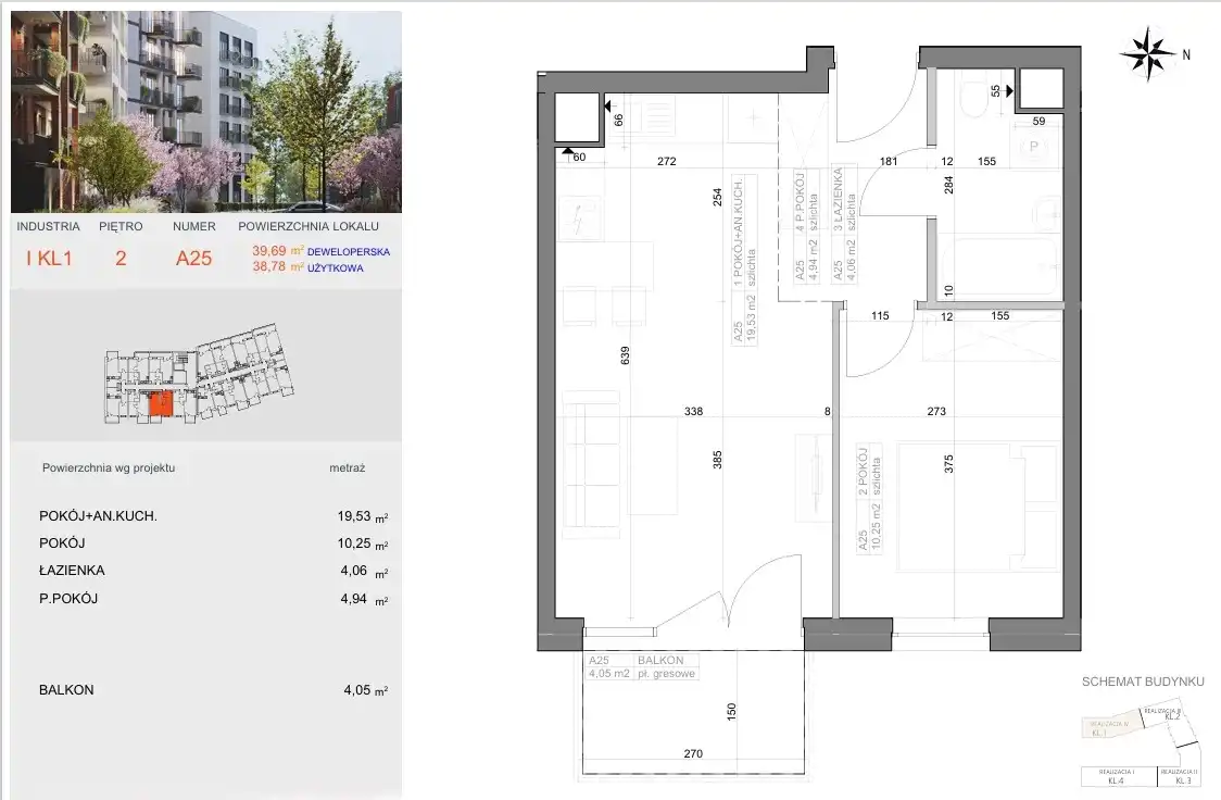- Charakterystyka mieszkania 38.78 m2, 2 pokoje