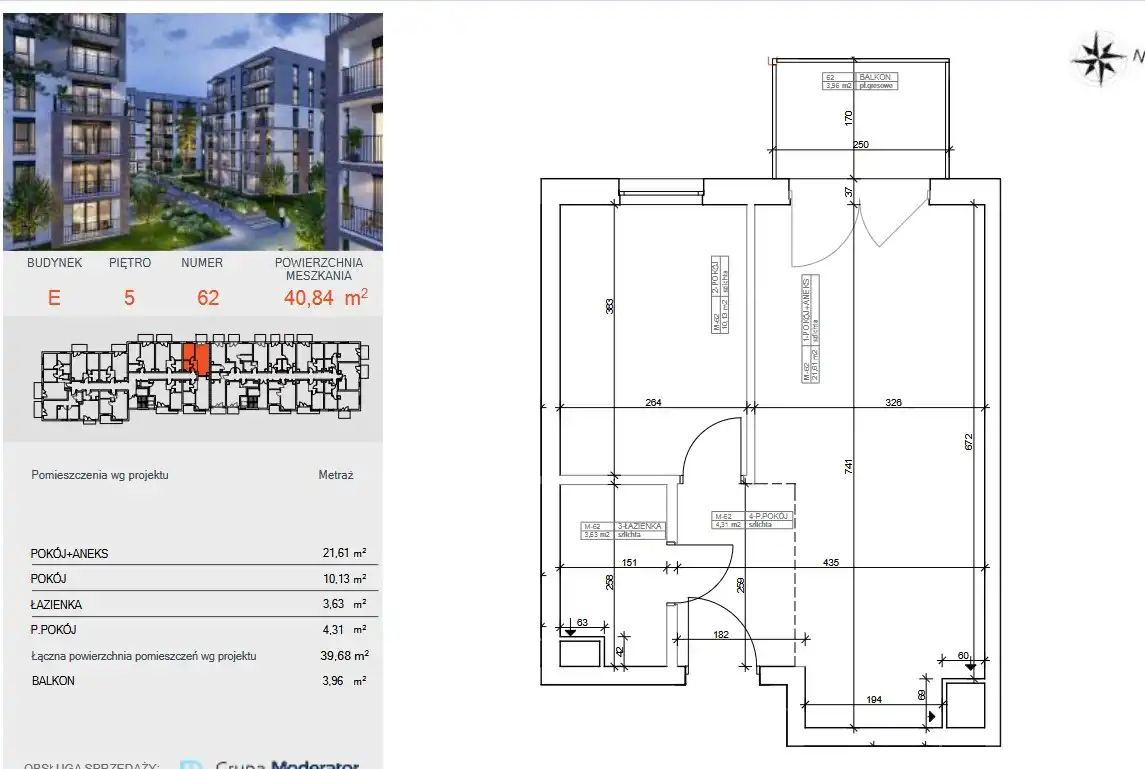 - Charakterystyka mieszkania 40.84 m2, 2 pokoje
