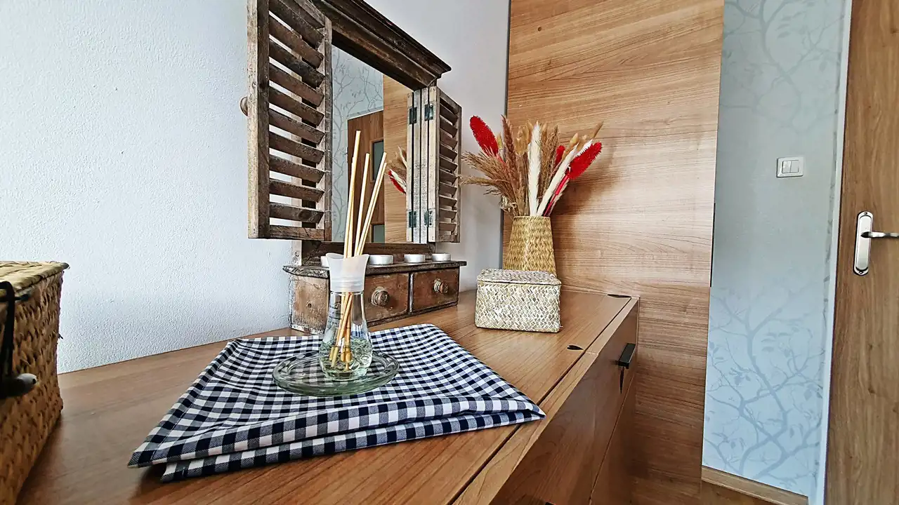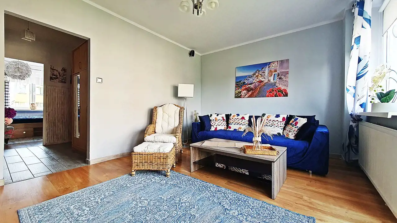 We wszystkich pomieszczeniach gładzie i 2 letnie panele imitujące drewno, w bardzo dobrym stanie. W przedpokoju i kuchni płytki gresowe. Meble w pokojach (w bardzo dobrym stanie) oraz dodatki widoczne na zdjęciach w cenie mieszkania!