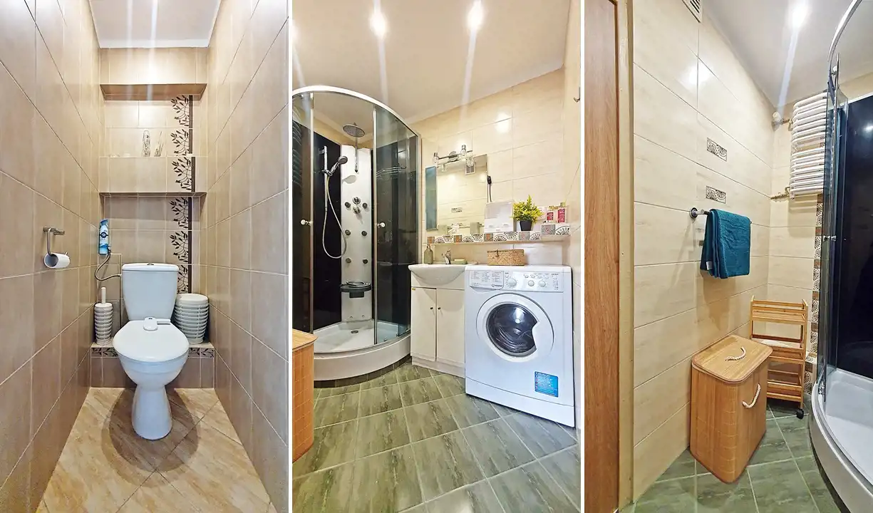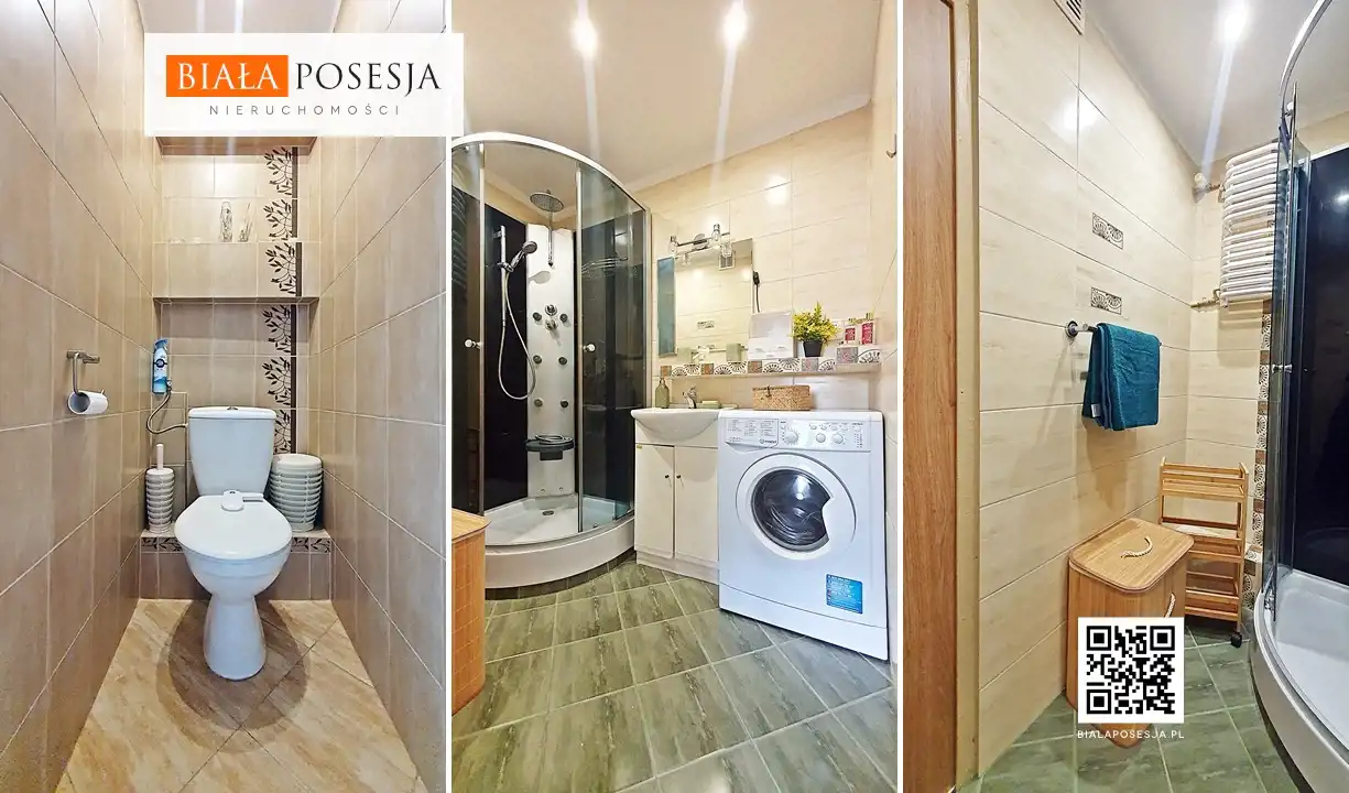 - czteroletnia łazienka - 3,8 m2 - z pralką Indesit, prysznicem z hydromasażem