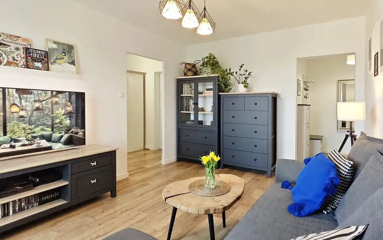 To mieszkanie od progu zachwyca stylem i przytulnym klimatem. Zaaranżowane z wyczuciem, łączy nowoczesne rozwiązania z naturalnymi materiałami, tworząc wnętrze, w którym chce się zostać na dłużej.
