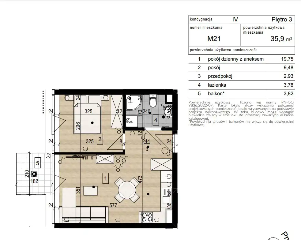 - Charakterystyka mieszkania 35.9 m2, 2 pokoje