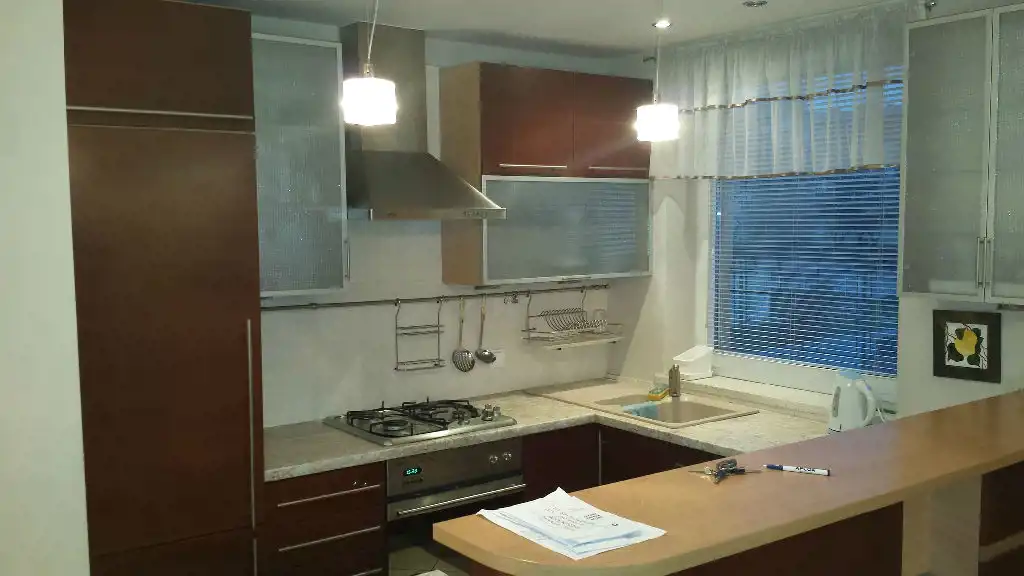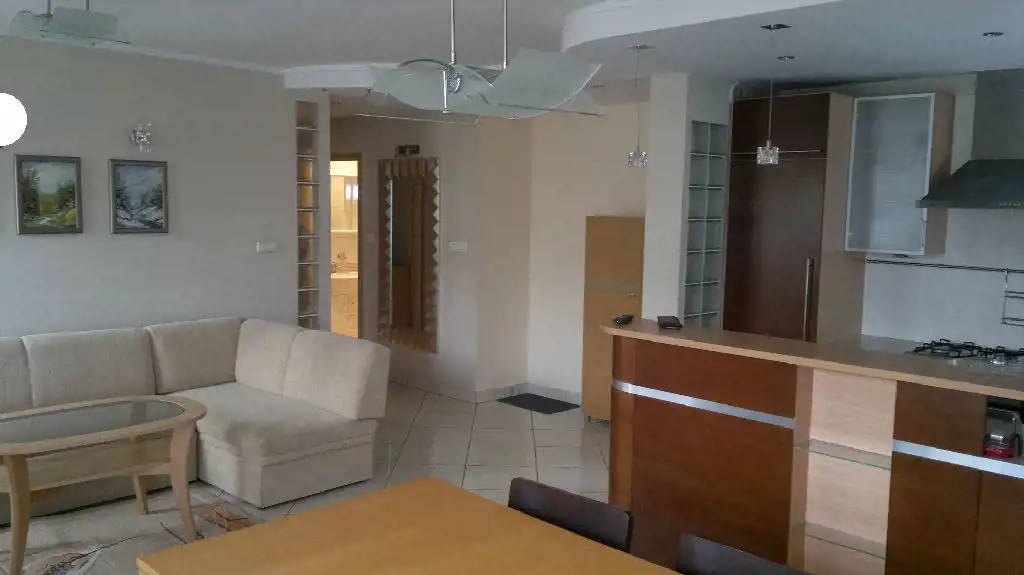 Pow. mieszkania 53m2., piętro, przestrzenne, umeblowane, urządzone, salon z aneksem kuchennym pow. 35m2., umeblowanym, lodówka, zmywarka, zabudowa mebli kuchennych, pochłaniacz pary.