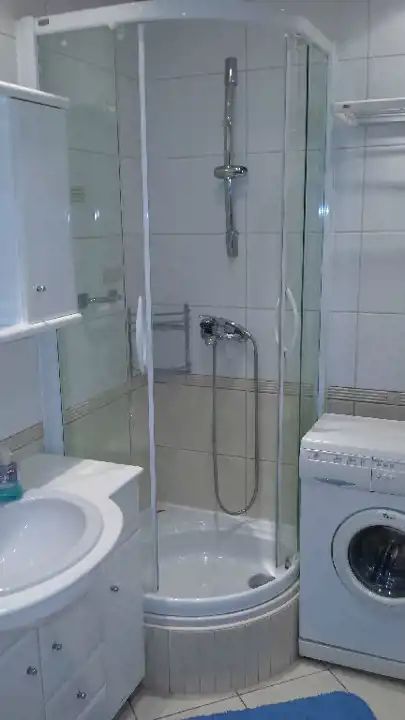 Łazienka z wc pow. 6m2. - kabina prysznicowa, glazura i terakota.