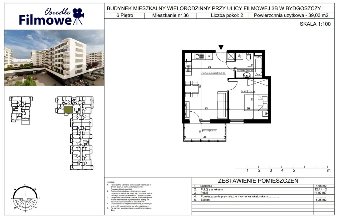 - Charakterystyka mieszkania 39.03 m2, 2 pokoje