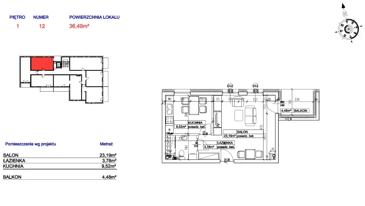 Przedstawiamy kawalerkę z oddzielną kuchnią. Mieszkanie o powierzchni 36,49 m2 na 1 piętrze nowoczesnego bloku z windą