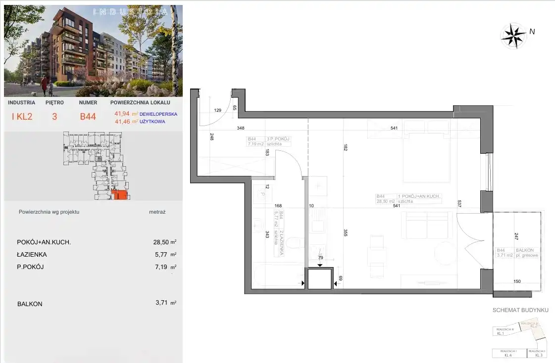 Mieszkanie B44 to esencja nowoczesnego projektowania – harmonijne proporcje, logiczny układ, światło grające po ścianach. Tutaj prostota ma wymiar elegancji, a funkcjonalność staje się stylem życia. Zaprojektowane zgodnie z normą PN-ISO 9836:2022-07, wykończone w standardzie deweloperskim, z możliwością indywidualnej aranżacji – gotowe, by stało się Twoją własną historią.