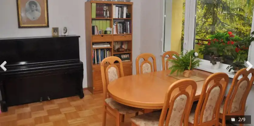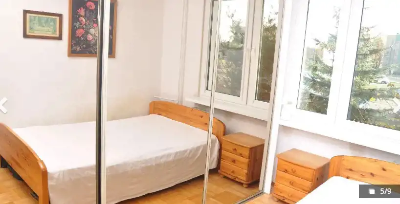 W jednym z pokojów znajduje się zabudowa typu Komandor, w całym mieszkaniu położony jest parkiet, w przedpokoju na ścianach niekonserwowana sosna.