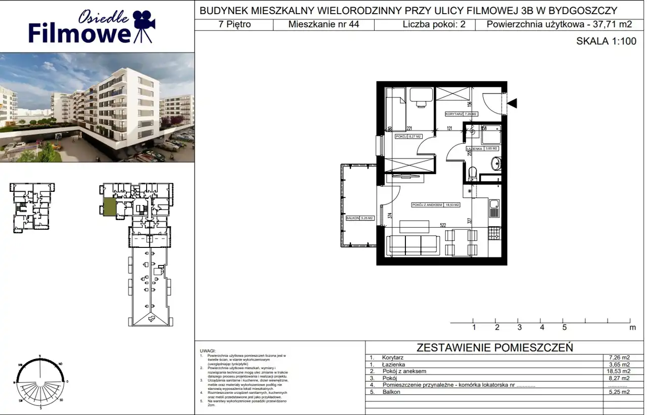 - Charakterystyka mieszkania 37.71 m2, 2 pokoje