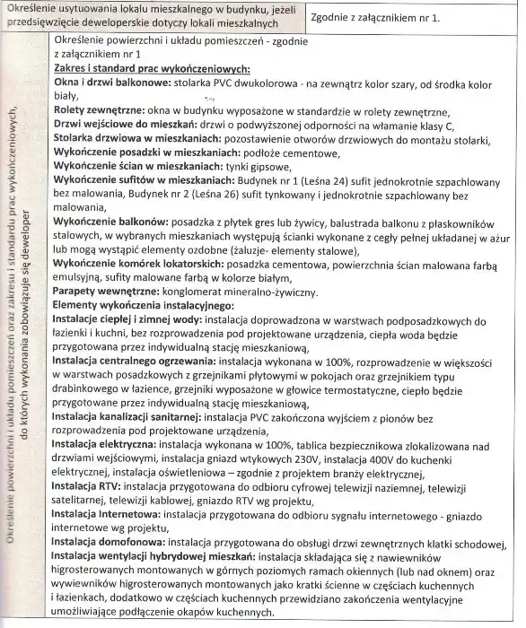 W załączniku obrys mieszkania na czerwono wraz z planem zagospodarowania terenu oraz standard wykończenia.