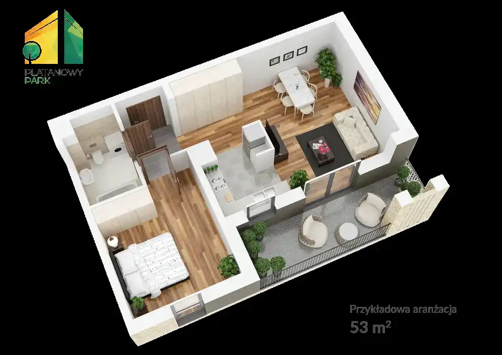 - Charakterystyka mieszkania 52.56 m2, 2 pokoje