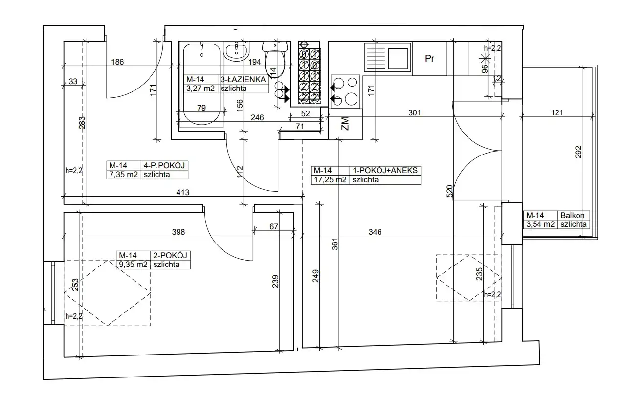 - Charakterystyka mieszkania 37.22 m2, 2 pokoje