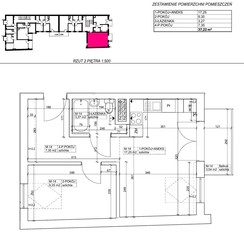 - Charakterystyka mieszkania 37.22 m2, 2 pokoje