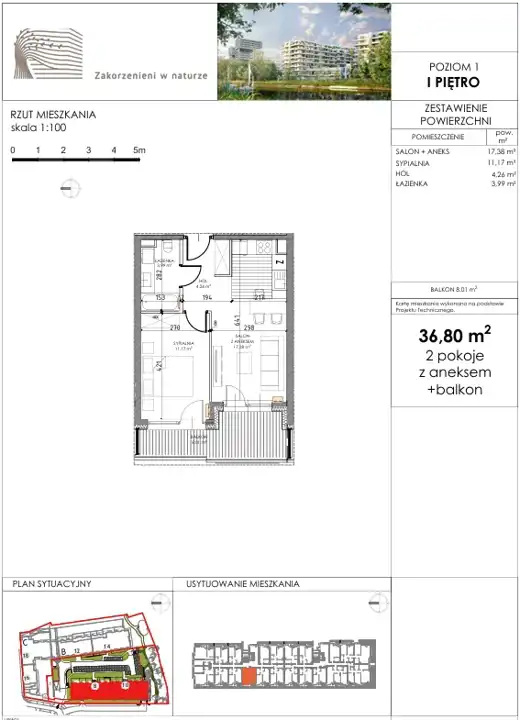 - Charakterystyka mieszkania 36.8 m2, 2 pokoje