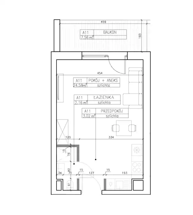 - Charakterystyka mieszkania 29.73 m2, 1 pokój