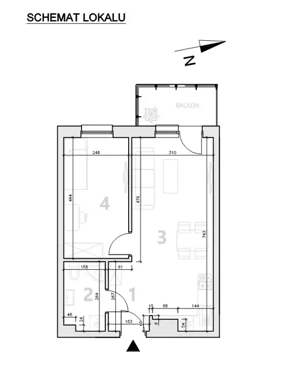 - Rozkład mieszkania 1p piętro