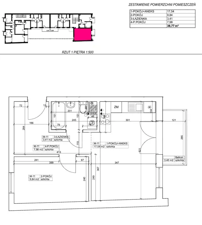 - Charakterystyka mieszkania 38.77 m2, 2 pokoje
