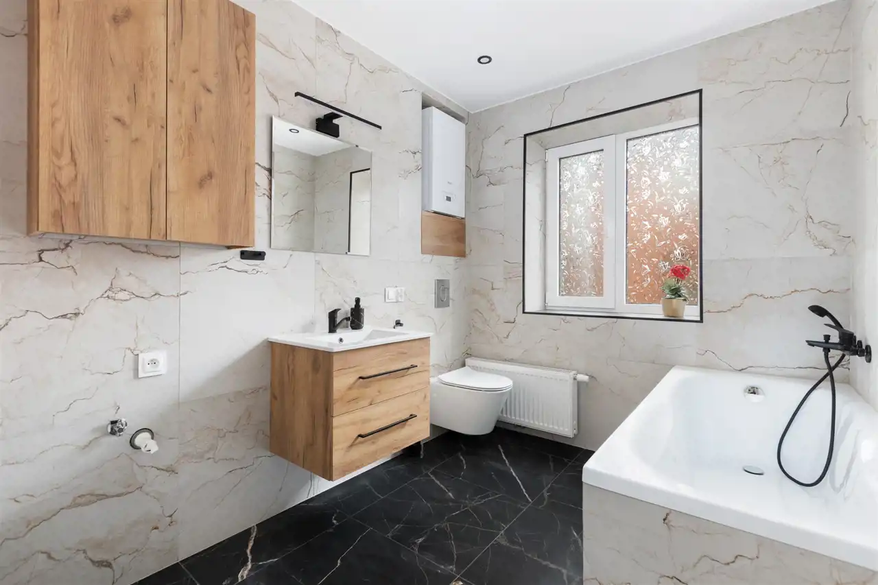 - Łazienka – przewidziane miejsce na prysznic, umywalkę, WC i pralkę,