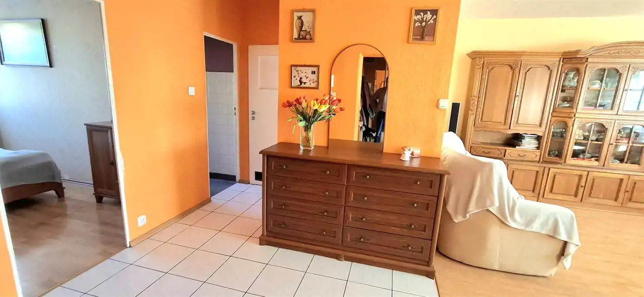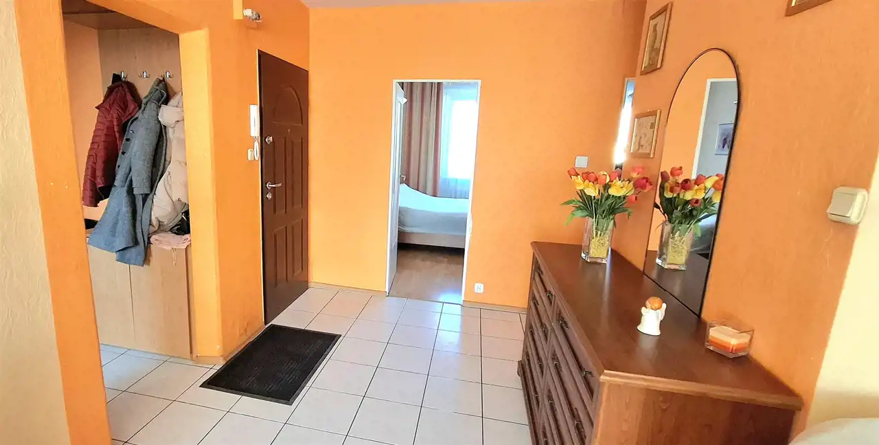 Dużym atutem mieszkania jest przestronny przedpokój z zabudową typu Komandor. Otwarta ściana prowadząca do salonu daje poczucie większej przestrzeni i sprawia, że mieszkanie jest jasne oraz przyjemne w odbiorze.