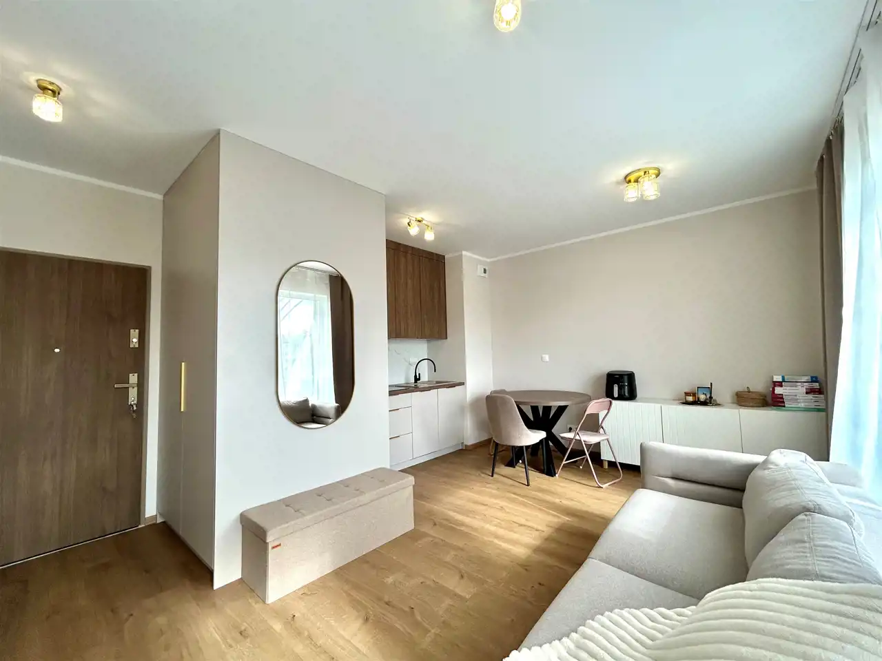 Mieszkanie zostało zaprojektowane z myślą o maksymalnym wykorzystaniu przestrzeni – jest niewielkie, ale niezwykle praktyczne i wygodne. Wysoki standard wykończenia, nowoczesny design oraz pełne wyposażenie sprawiają, że jest to gotowy produkt – wchodzisz i mieszkasz lub od razu wynajmujesz.