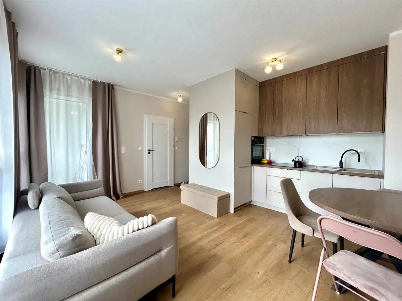 - przestronny, jasny salon z aneksem kuchennym