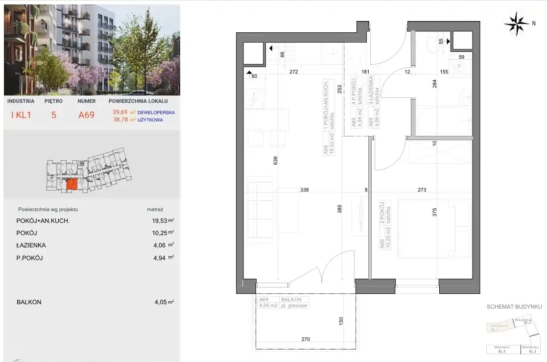 - Charakterystyka mieszkania 38.78 m2, 2 pokoje