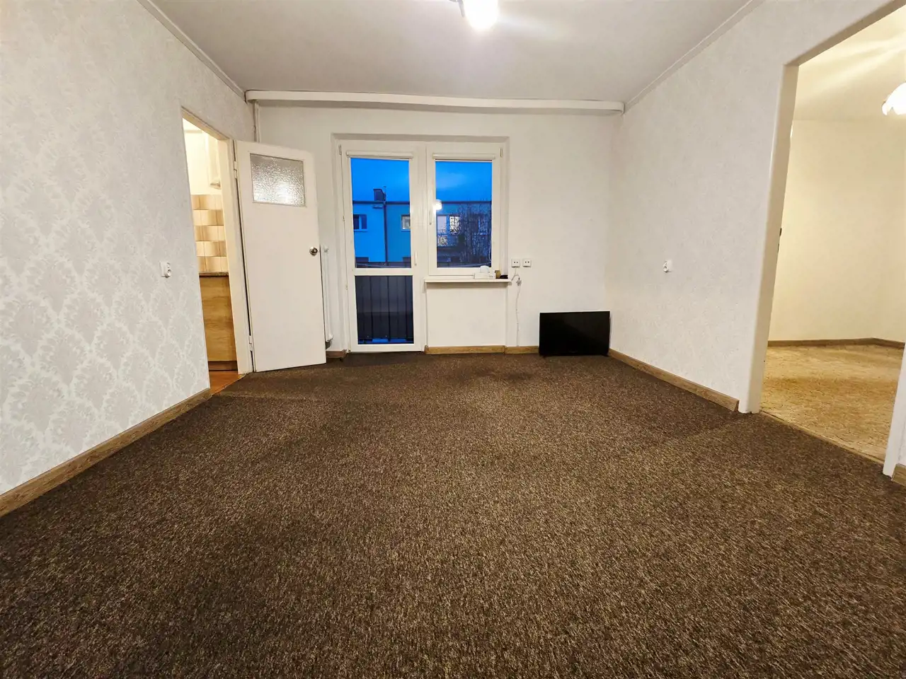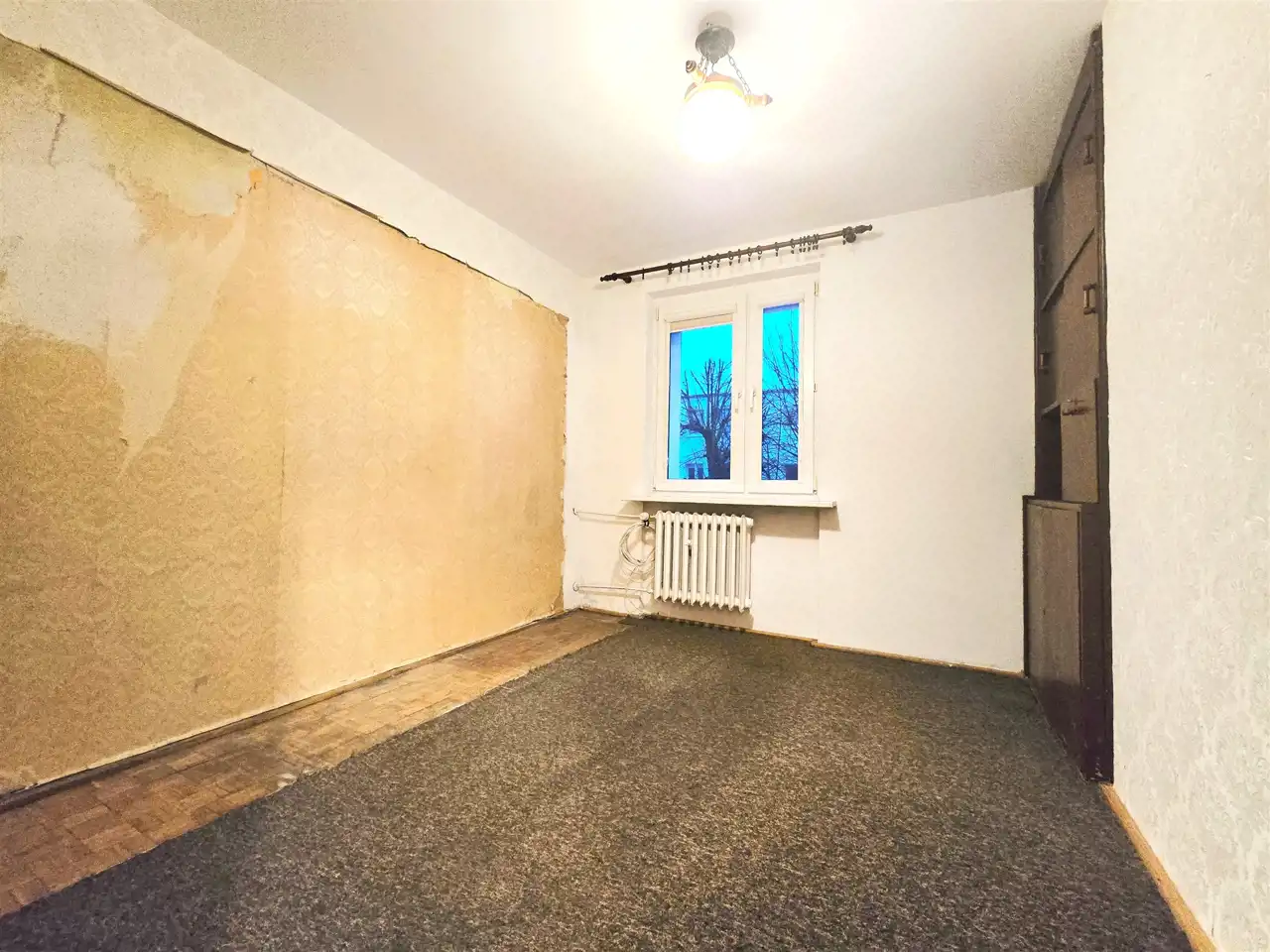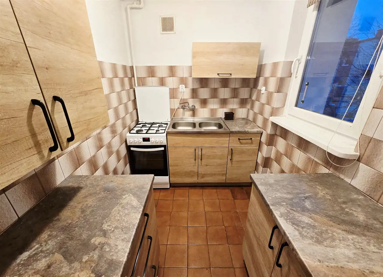 Pozostała część mieszkania to czysta karta dla Twojej wyobraźni. Choć wnętrza zawierają wykładziny i tapety, to kuchnię wypełniają solidne, zaledwie 5-letnie meble z salonu Agata. Lokal wymaga odświeżenia lub remontu, co daje Ci niepowtarzalną szansę na aranżację dokładnie pod Twój gust. Wymienione okna PCV są w bardzo dobrym stanie, a nadchodzący montaż liczników radiowych na starszego typu, solidnych kaloryferach pozwoli Ci na precyzyjne zarządzanie kosztami eksploatacji przy czynszu wynoszącym około 700 zł.