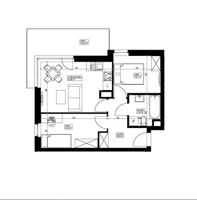 - Charakterystyka mieszkania 42.18 m2, 3 pokoje