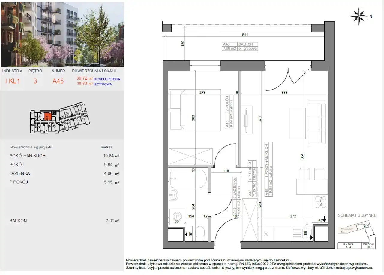 Dodatkowo do mieszkania przynależny balkon o powierzchni 7,99 m2