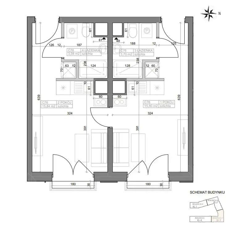 - 2x łazienki z WC