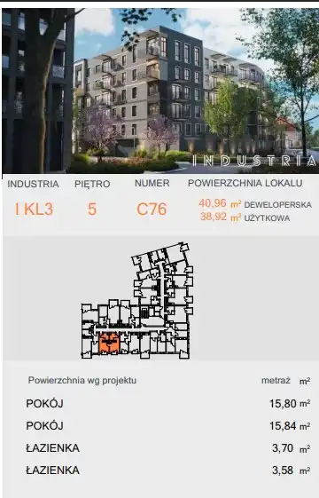 - Charakterystyka mieszkania 38.92 m2, 2 pokoje