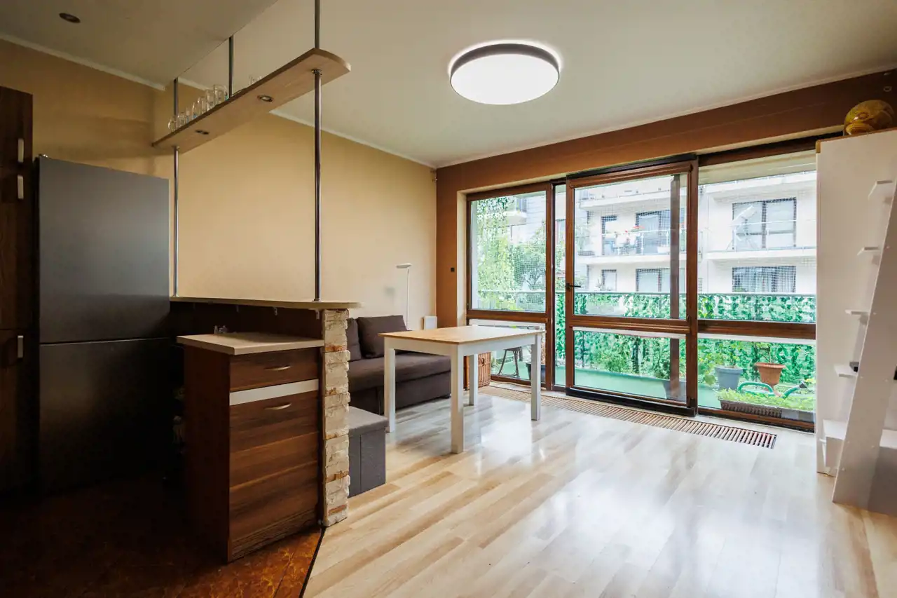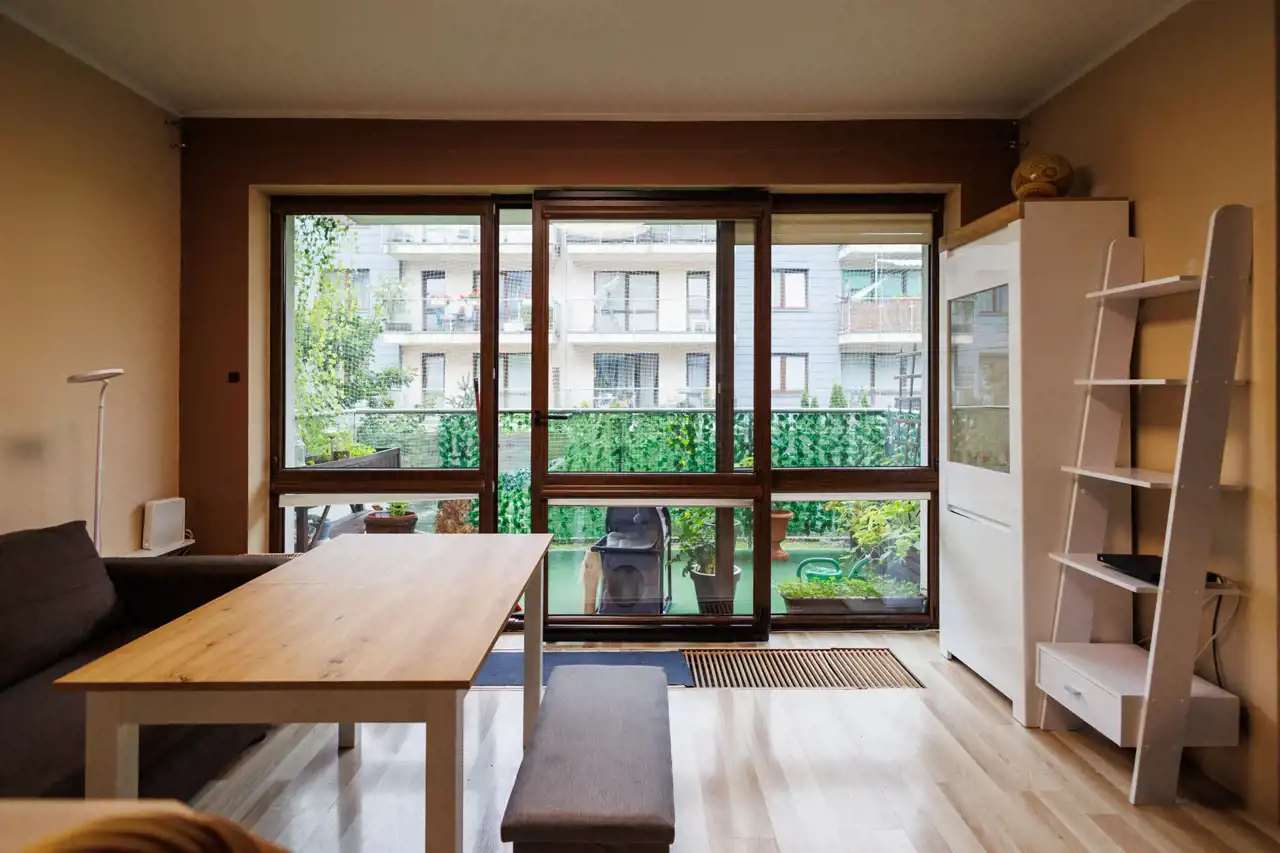 - słoneczna przestrzeń: mieszkanie jest pięknie doświetlone dzięki dużemu balkonowi z przesuwnymi drzwiami typu HS, które wpuszczają mnóstwo naturalnego światła.