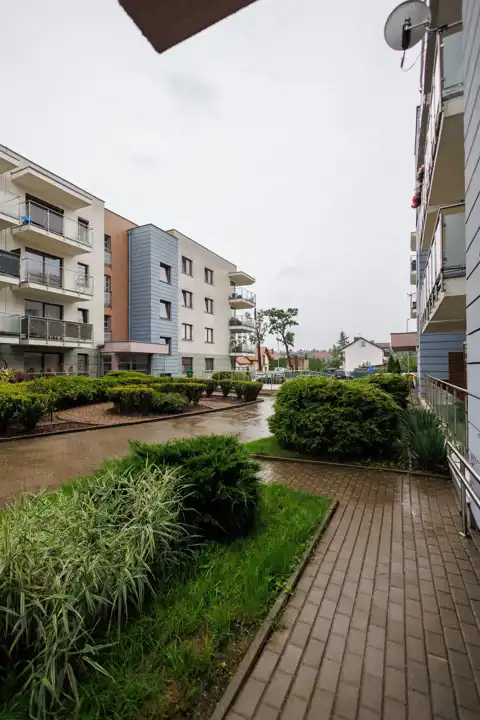 Lokalizacja tego mieszkania to prawdziwy atut, który gwarantuje codzienny komfort i dostęp do zieleni. Osiedle jest wyjątkowo zadbane, pełne pięknej roślinności i przytulnych ławeczek, a dla najmłodszych mieszkańców przygotowano kilka bezpiecznych placów zabaw.