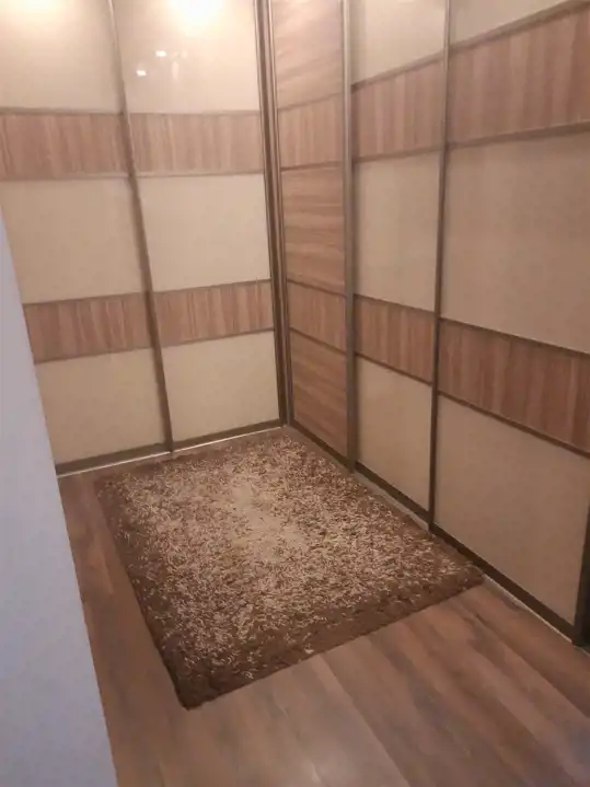Duża garderoba w przedpokoju zabudowana szafą typu komandor.