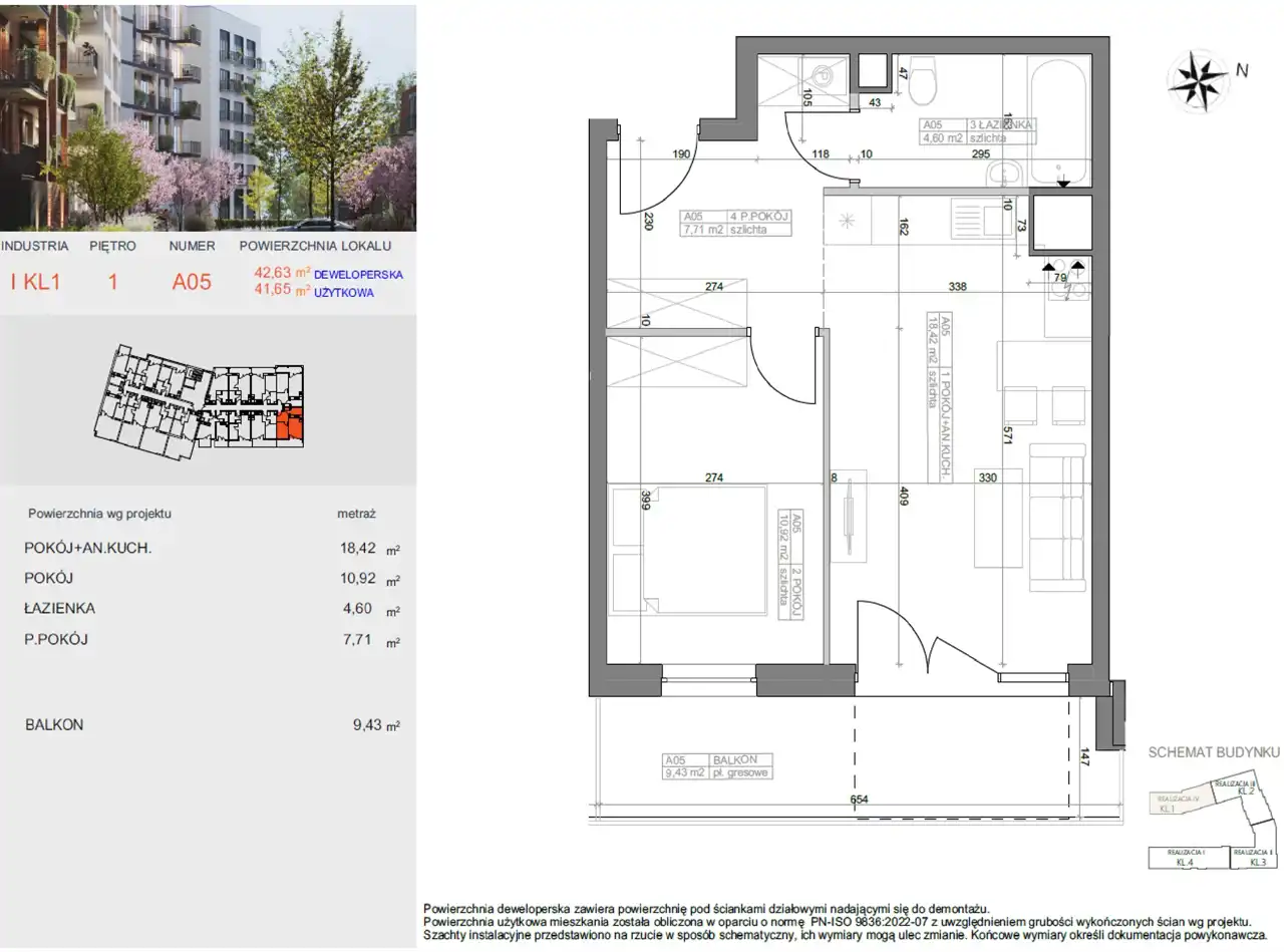 - Charakterystyka mieszkania 41.65 m2, 2 pokoje