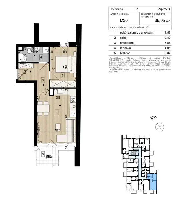 - Charakterystyka mieszkania 39.05 m2, 2 pokoje