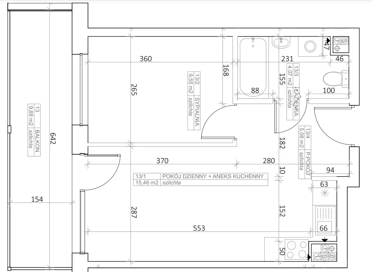- Charakterystyka mieszkania 34.16 m2, 2 pokoje