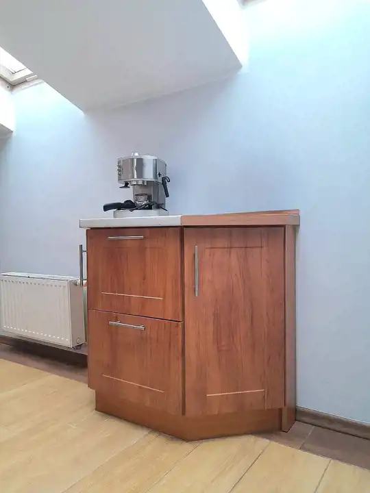 W cenie pozostaje zabudowa kuchenna, piekarnik elektryczny, kuchenka gazowa, okap, lodówka, pralka oraz szafy w zabudowie typu Komandor.