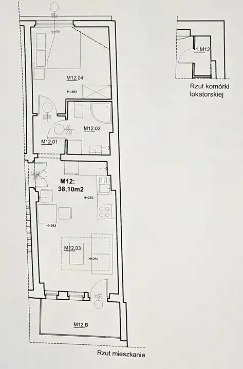 Prezentowane w ofercie mieszkanie ma na rzucie oznaczenie M12.