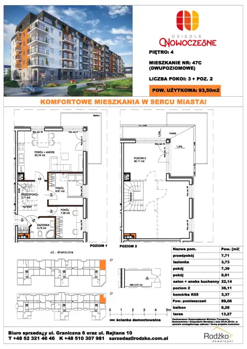 - Charakterystyka mieszkania 93.5 m2, 4 pokoje
