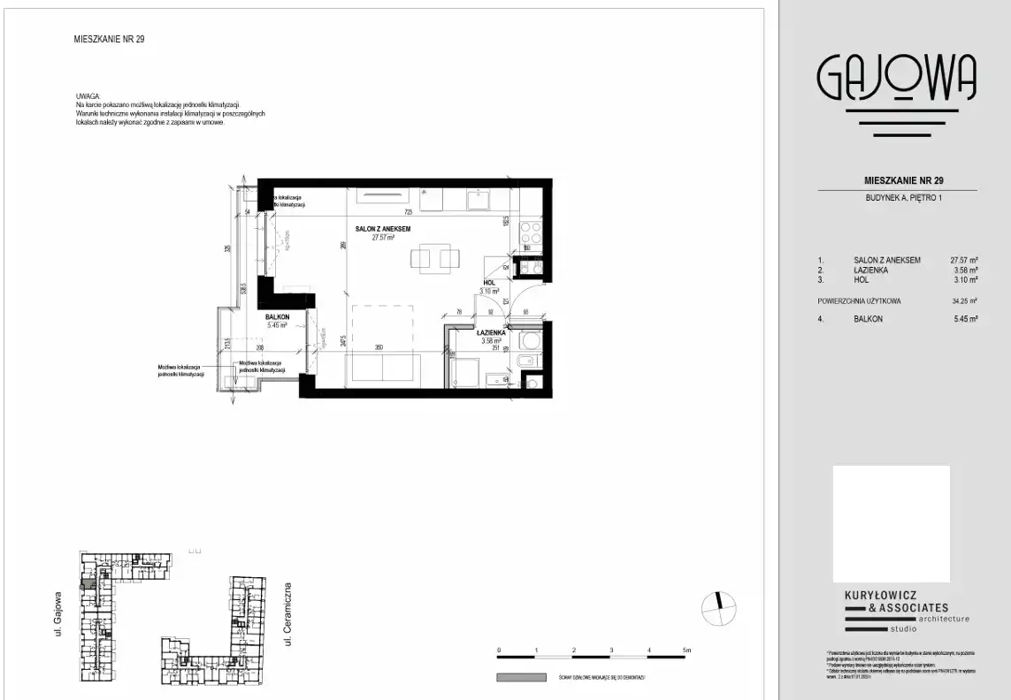 - Charakterystyka mieszkania 34.25 m2, 2 pokoje
