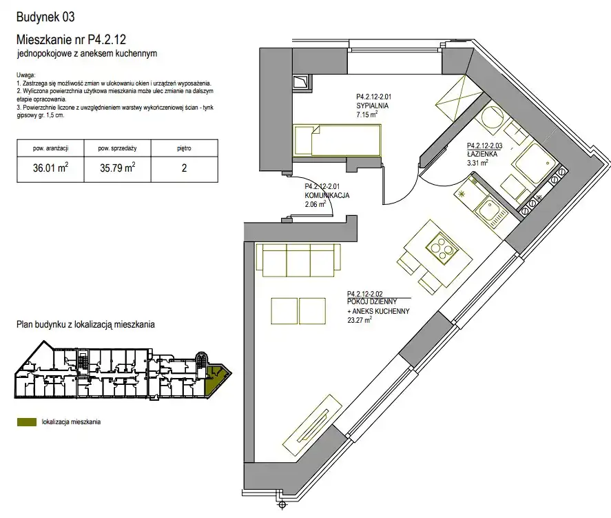 - Charakterystyka mieszkania 35.79 m2, 1 pokój