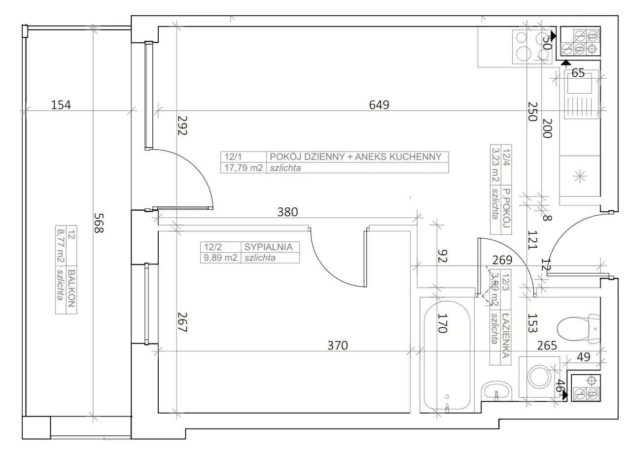 - Charakterystyka mieszkania 34.9 m2, 2 pokoje