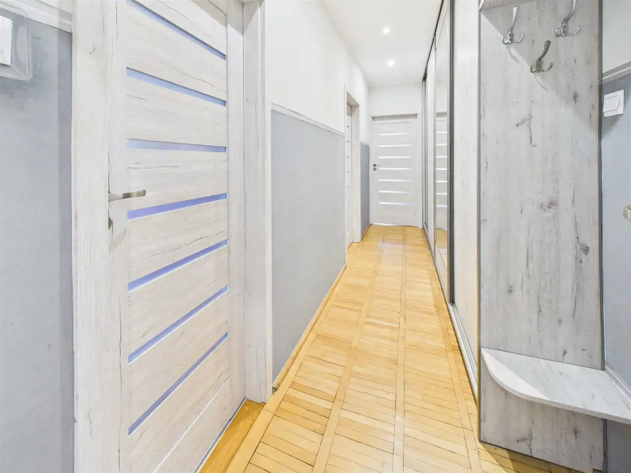 Mieszkanie składa się z przestronnego salonu, oddzielnej sypialni, osobnej kuchni, łazienki z WC oraz przedpokoju. Układ jest klasyczny i bardzo funkcjonalny, co daje szerokie możliwości aranżacyjne.