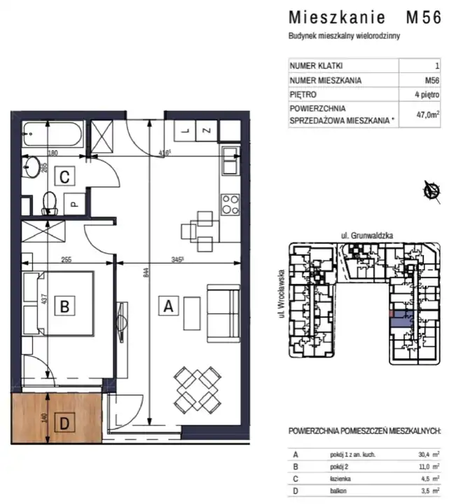 - Charakterystyka mieszkania 47 m2, 2 pokoje